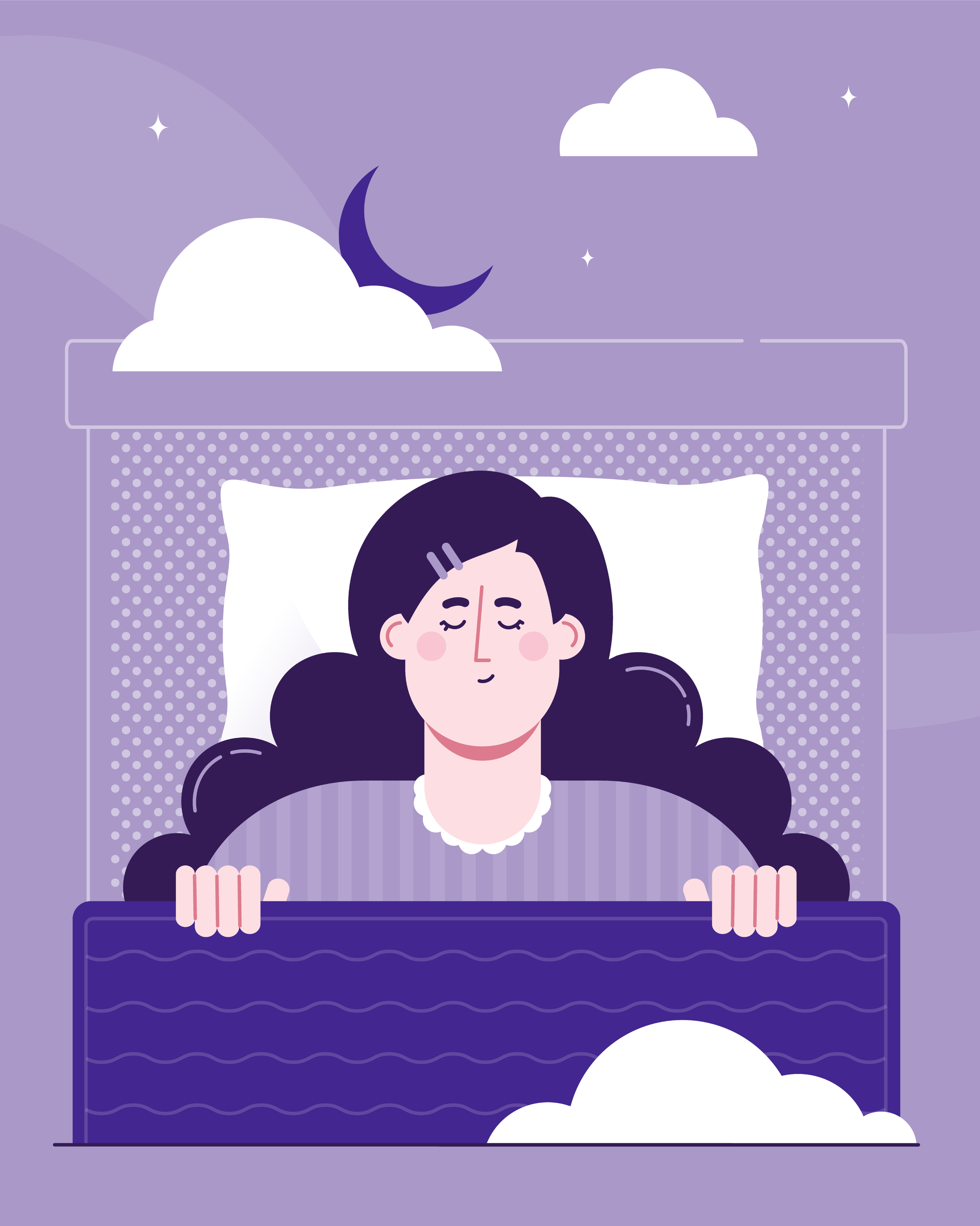 Factors like these can send your body mixed signals and cause a sleep problem, but a calming bedtime routine can help you develop a more stable circadian rhythm. You can also try using a grounding sheet or weighted blanket to help you relax.