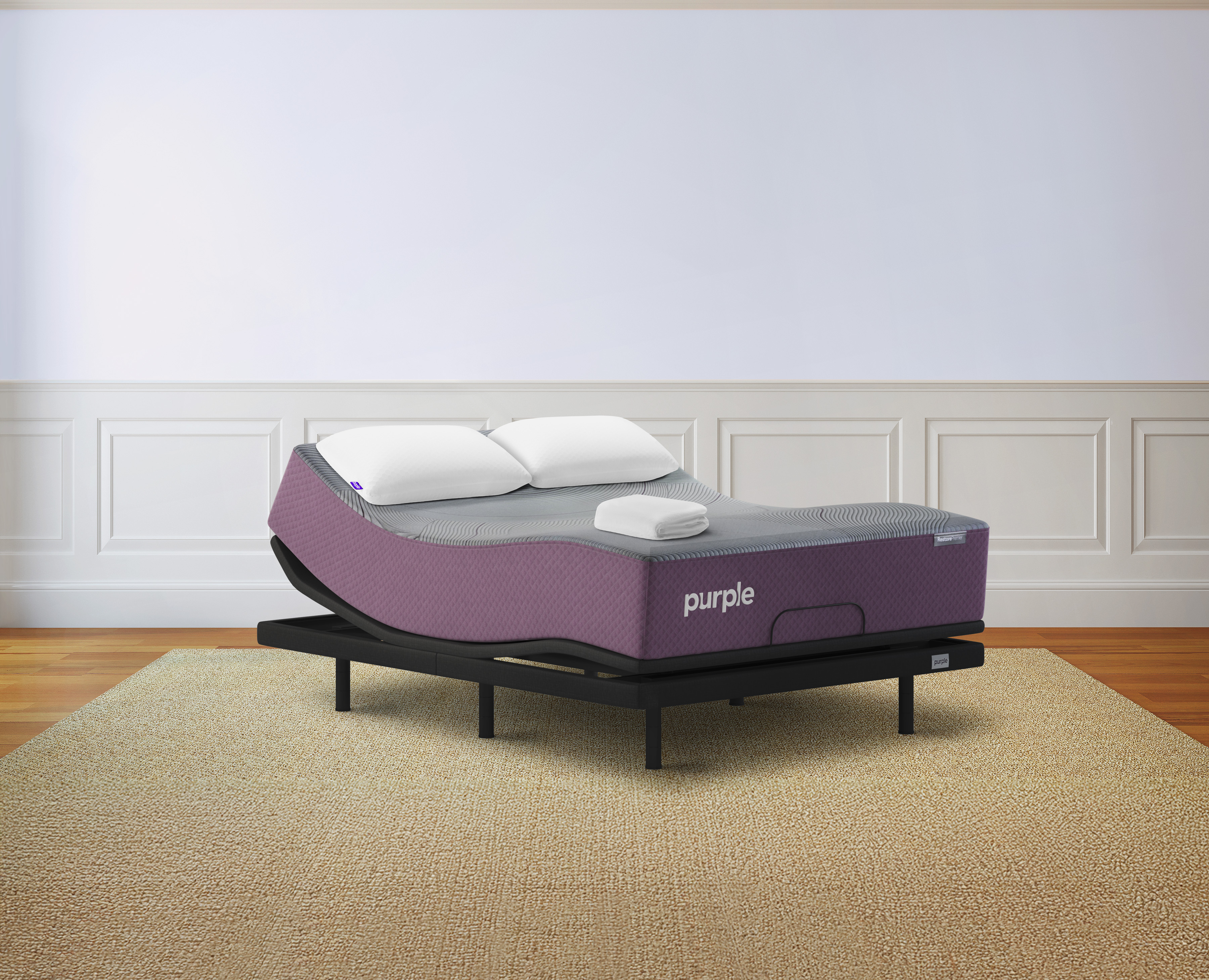 Split King: (1) Split King RestorePremier® Hybrid Mattress, (1) Split King Purple Premium Plus Smart Base, (2) King Harmony™ Pillows, (1) Standard Waterproof Mattress Protector
