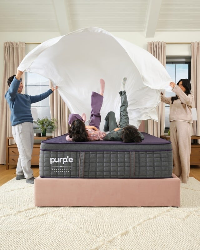 1Survey results from a 2026 SleepScore Labs study with subjects sleeping on a Purple Rejuvenate Collection mattress for 4-weeks compared to their original mattress.  Learn more about the sleep study.
